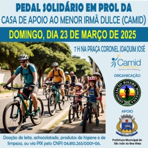 Participe do Pedal Solidário e ajude a CAMID - Casa de Apoio ao Menor Irmã Dulce, uma instituição que acolhe e transforma vidas com amor e dedicação. Inscreva-se aqui: link da inscrição A inscrição será confirmada mediante a doação de: Leite, achocolatado Produtos de higiene e limpeza Ou uma contribuição via Pix: CNPJ 04.810.265/0001-06 Quer ajudar ainda mais? Se não…